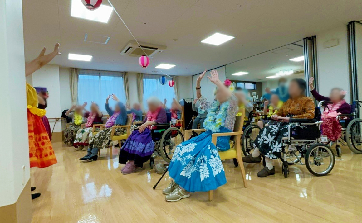 当ホームでは、個別リハビリ・集団リハビリに力を入れております。又、医療との連携を密ししており、美味しいお食事、イベントなどを通し、皆様が笑顔でたのしくお過ごしいただけるよう支援しております。スタッフがご入居者様のご要望をじっくり伺うことから始め、日々ご入居者様と接する中での「気づき」を大切にすることで、ご入居者様が自分らしく過ごしていただく為に必要なサービスは何かを常に模索し、ご入居者様に「入って良かった」と喜んでいただけるホーム作りを目指しております。サークル活動(コーラス部・園芸部・手芸工作・英会話など)もご入居者様の趣味をお聴きして、たのしんで頂ける活動をしております。また、ご入居者様参加型のイベントも開催しており、納涼祭やひな祭りなども、準備段階からお手伝いして頂きながら、自分たちが企画したイベントだと実感して楽しんでいただく事を大切にしております。半年に1回、バス旅行ツアーも開催しており、ご家族様も同行できる旅行となっております。ゆとりのある施設介護をご提供しておりますので、 自然に囲まれたホームだからこそ可能なケアをご実感いただけます。