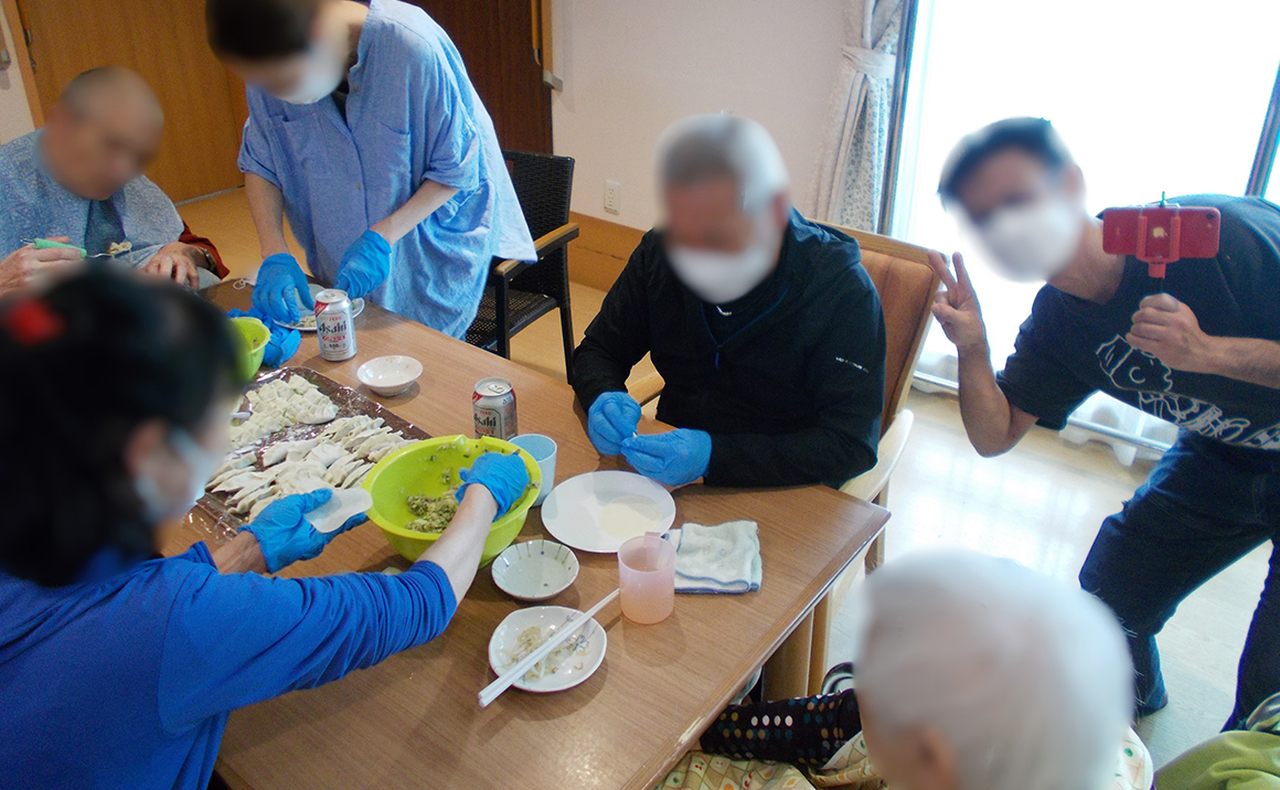 当ホームでは、地域との繋がりを大切にし、定例イベントとして月に2回の音楽療法、月1回の体操教室を地域の方々を交えて開催しております。その他毎週金曜日には移動スーパーを誘致してご入居者様、地域の方々がご利用いただける環境を提供しております。また、終末期までの対応を行う事業所としてご入居者の皆様から「たのしかった」と感じていただけるよう、外出イベントや外食イベントではご入居者様からの要望も取り入れて企画しております。常に"たのしい""自分らしい" 暮らしを支援してまいります。 一緒に買い物や洗濯をしたり、食事を作ったりし、お互いに助け合いながら自立した生活が営まれるようにサポートいたします。