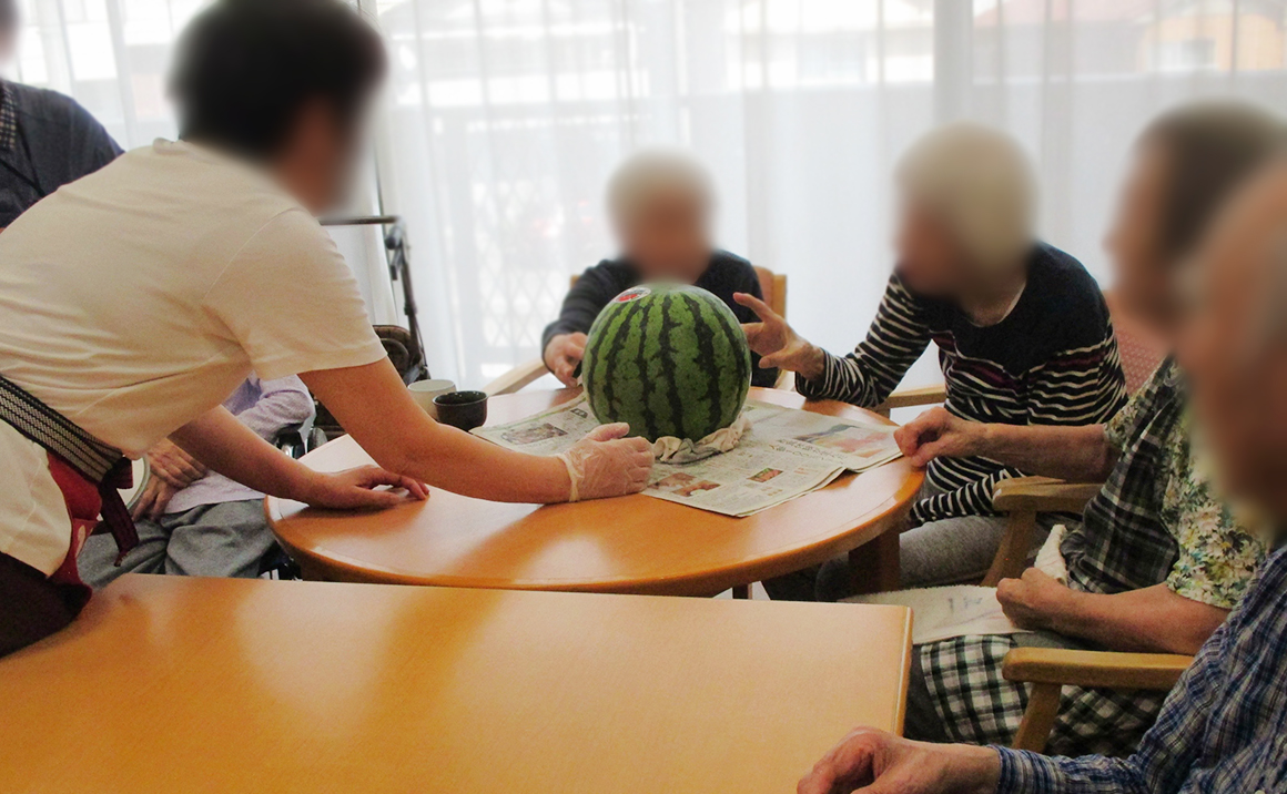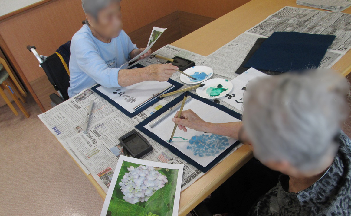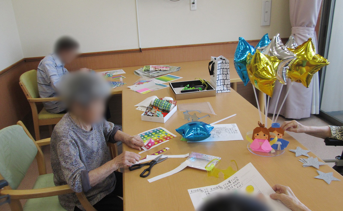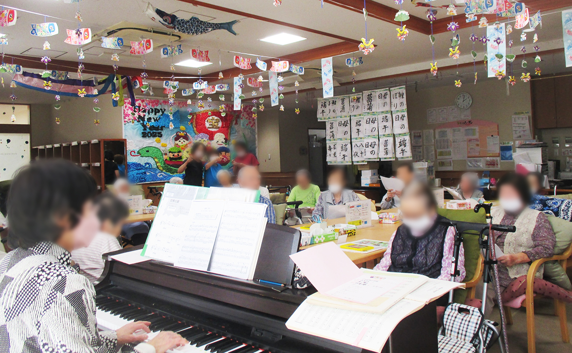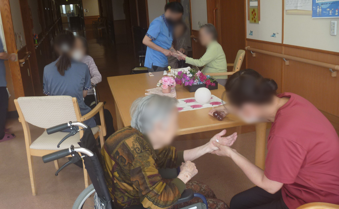 館内は、各フロア優しいイメージカラーにより暖かみの有るデザインで構成されています。南側はゆるやかなカーブを描く全面ガラスが特徴的なとなっており、窓から街のパノラマ景色、夕日や春には窓越しに桜を楽しみながらお食事やティータイムを過ごす事が出来ます。理学療法士に個々のリハビリメニューを作成してもらい、スタッフによるリハビリにも取り組んでおります。エレベーターホールや廊下は通路幅を広く確保して有る為、安心・安全にリハビリの歩行訓練も可能です。ご入居者様と一緒に手作りの角松にて正月を迎え、正月祭に始まりお花見、夏祭り等季節ごとのイベント、ボランティアの方々による誕生日会や二胡の演奏会、習字等趣向を凝らした毎月のイベントに喜びと感動に満ちた生活を送って頂いております。地域の保育園児や小学生との交流会の場も設け人と関わって生きる事の楽しさも再確認されております。