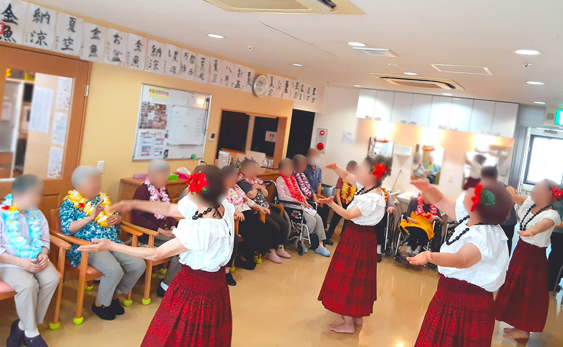 四季を通して豊富な年間行事、各フロア企画のイベントを充実させ、常にご家族様のご要望を取り入れ、一緒に楽しく参加して頂いています。家庭菜園では、ご入居者様と一緒に育て、収穫した野菜を調理して召し上がって頂いて、大変喜ばれています。また、地域交流にも積極的に参加しています。