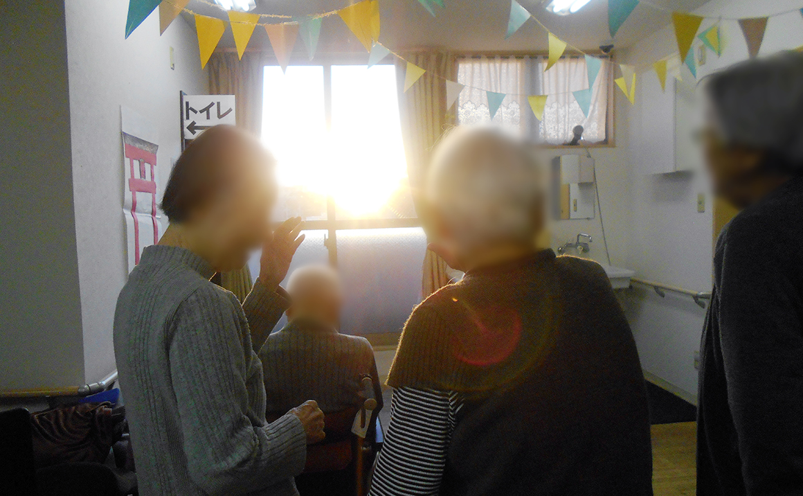 2か月ごとにボランティアの方をお招きしたり、ふれあい喫茶への参加や近隣の市場まで買い物に出かけたりするなど、ご入居者様が地域との関わりを持てるよう工夫しています。