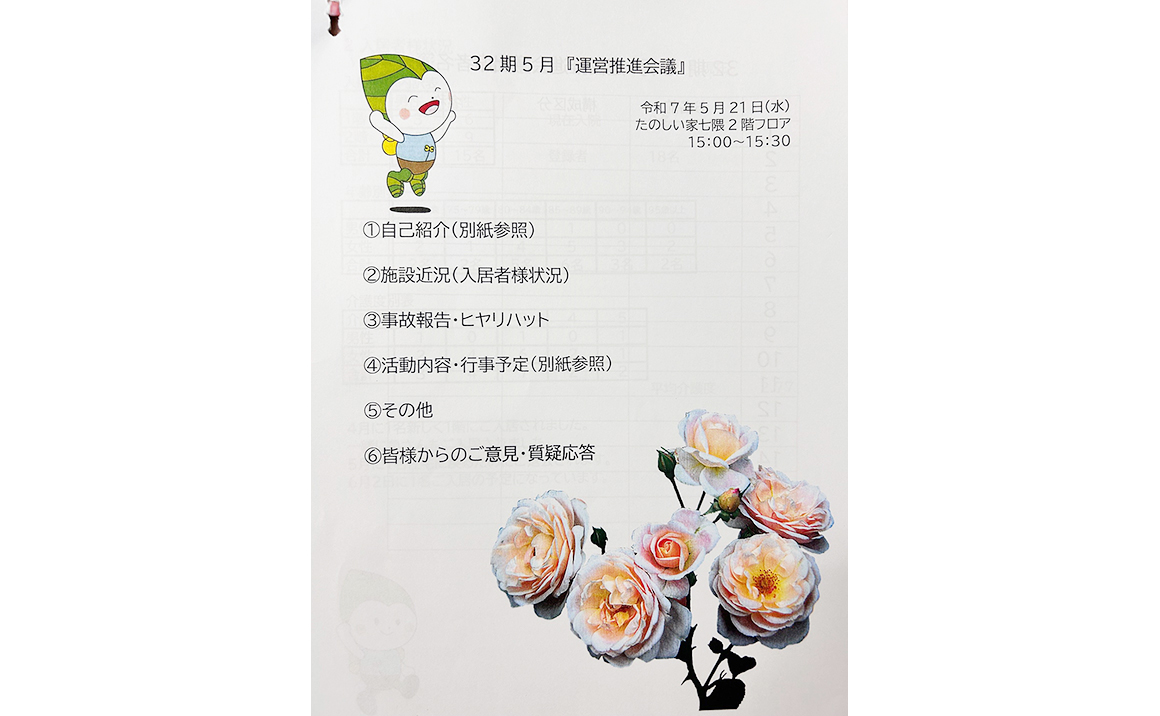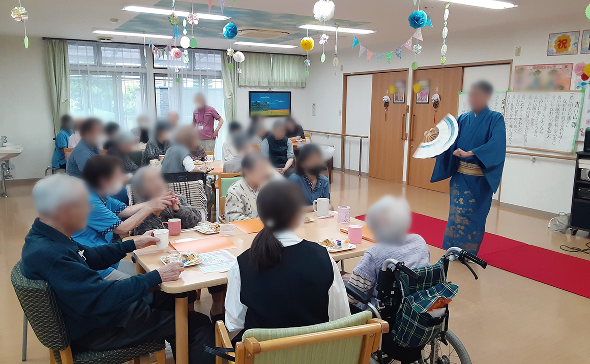 当ホームでは、施設理念の一部でもある「大きな家族」を合言葉に日常では食事の用意から後片付け、洗濯物やお掃除等、出来る限りご入居者様にも一緒にしていただいています。またレクレーションとしましては施設内での季節行事や調理レクに加え、不定期ではありますが地下鉄を利用した外出や、個別の外出も行っております。また「ご入居者様・ご家族様・地域の皆様・スタッフが共に笑顔で楽しく過ごせ愛されるホーム」を目指し、その一環として「七隈カフェ」を毎月開催しております。カフェにはご入居者様やそのご家族様はもちろんのこと、地域住民の方やボランティアさん、また他施設の方や行政等、様々な方が参加され、交流の場となっています。ご入居者様へ安心と安全をお届けし、自立に向けたサービスをご提供いたします。