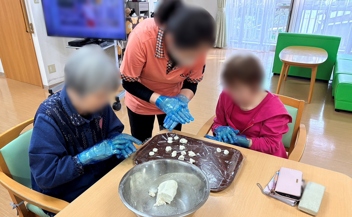 当ホームでは、施設理念の一部でもある「大きな家族」を合言葉に日常では食事の用意から後片付け、洗濯物やお掃除等、出来る限りご入居者様にも一緒にしていただいています。またレクレーションとしましては施設内での季節行事や調理レクに加え、不定期ではありますが地下鉄を利用した外出や、個別の外出も行っております。また「ご入居者様・ご家族様・地域の皆様・スタッフが共に笑顔で楽しく過ごせ愛されるホーム」を目指し、その一環として「七隈カフェ」を毎月開催しております。カフェにはご入居者様やそのご家族様はもちろんのこと、地域住民の方やボランティアさん、また他施設の方や行政等、様々な方が参加され、交流の場となっています。ご入居者様へ安心と安全をお届けし、自立に向けたサービスをご提供いたします。