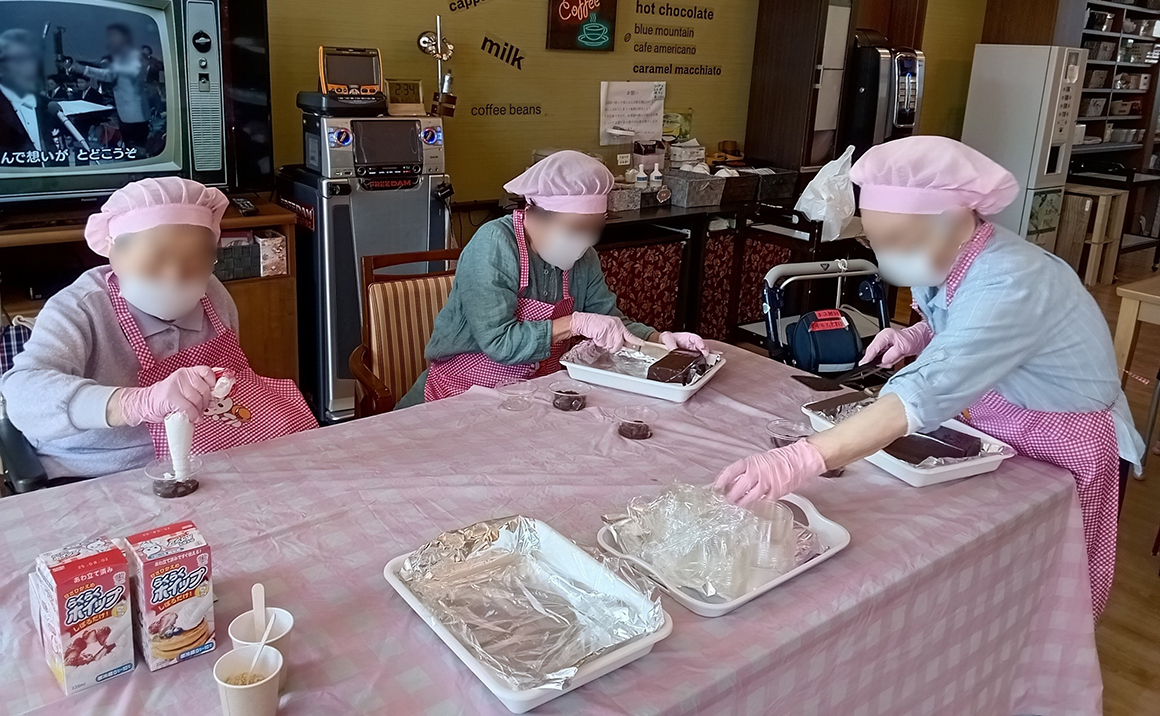 自宅に近い施設を目指し、ご入居者様の自己決定を大切にします。お食事も各食事は一時間半の時間幅があり、お腹がすいたら注文していただく「レストラン方式」を取り入れております。また朝食と昼食は食べたいものを自らその場で選んでいただきます。小腹が空いたときなどご利用いただける「軽食サービス」もあり、軽食からスイーツまでバラエティに富んだメニューをご用意しております。ぜひ一度自慢の食事を召し上がっていただきたいです。