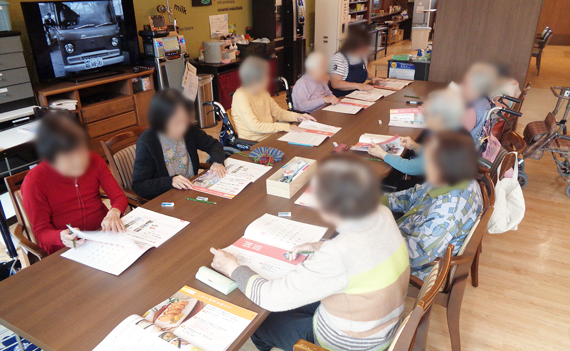 自宅に近い施設を目指し、ご入居者様の自己決定を大切にします。お食事も各食事は一時間半の時間幅があり、お腹がすいたら注文していただく「レストラン方式」を取り入れております。また朝食と昼食は食べたいものを自らその場で選んでいただきます。小腹が空いたときなどご利用いただける「軽食サービス」もあり、軽食からスイーツまでバラエティに富んだメニューをご用意しております。ぜひ一度自慢の食事を召し上がっていただきたいです。