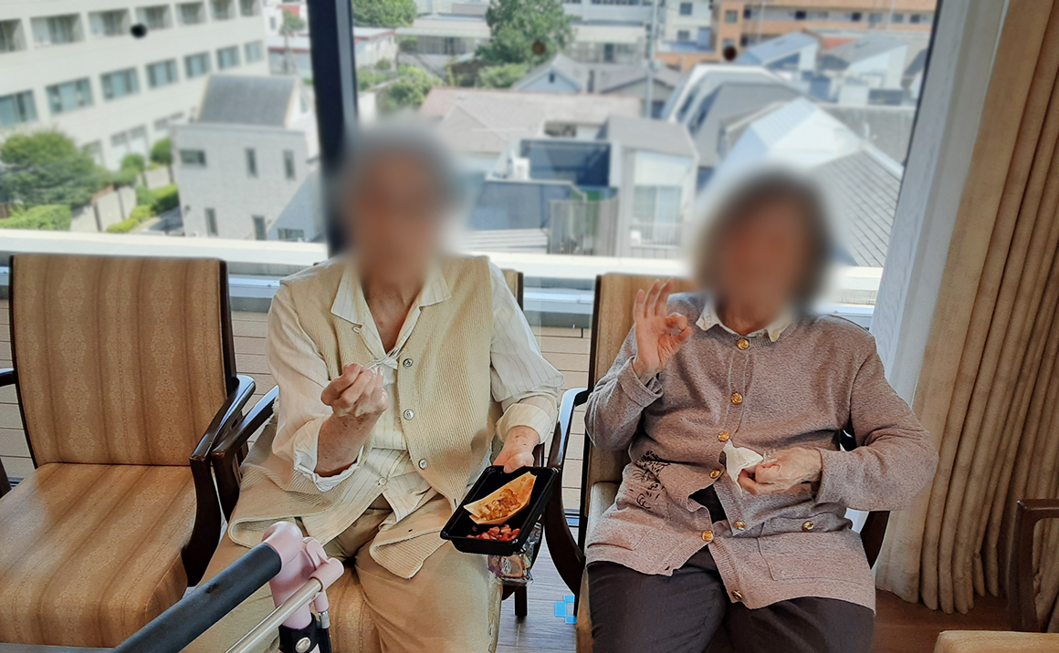 入居者さんとお話しすることはできませんでしたが、談話室のような場所で過ごされている姿を拝見しました。車椅子の方もいらっしゃいました。みなさん楽しそうに過ごされていました。