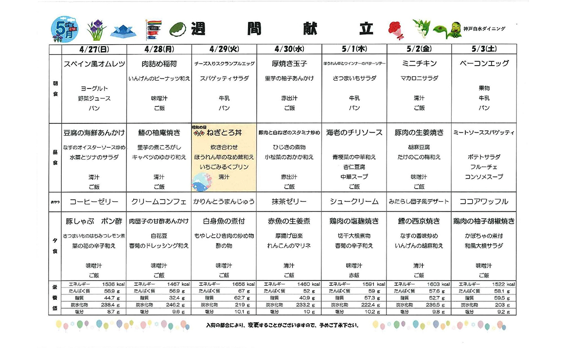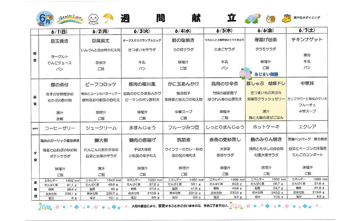 • ♪ 6月献立表 ♪ 【プレザンメゾン神戸白水】