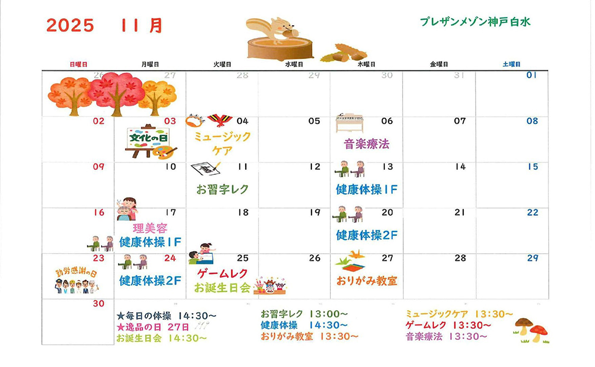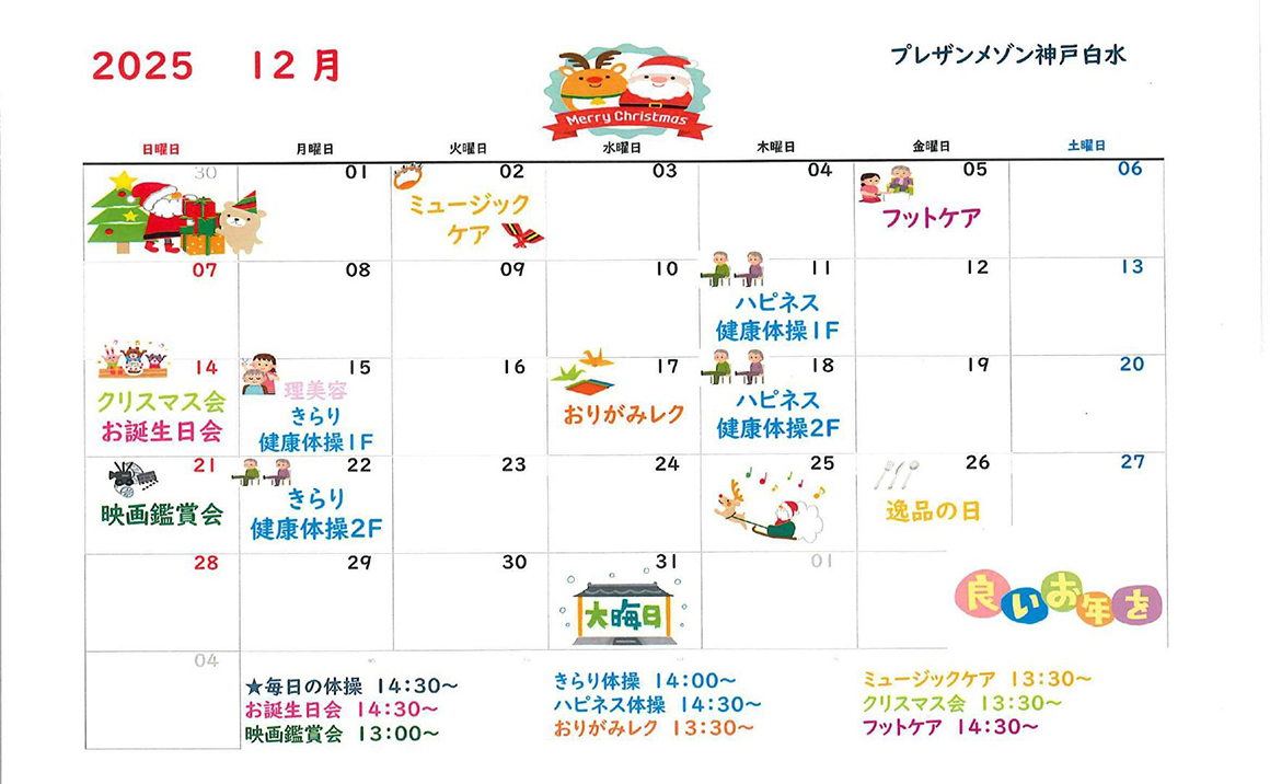 • 【12月施設カレンダー】プレザンメゾン神戸白水