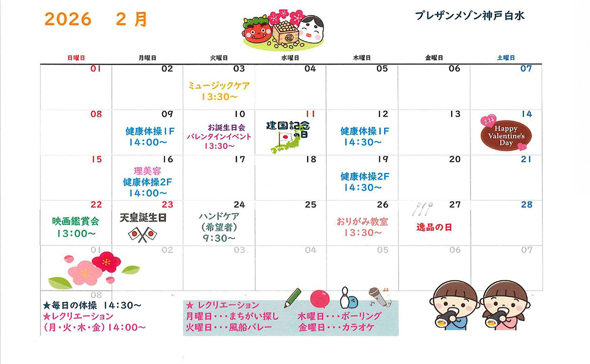 神戸市西区にある介護付有料老人ホーム「プレザンメゾン神戸白水」は、ご入居者様の生活リハビリを楽しみながら取り組めるようレクリエーションを充実させ、新たな趣味を持ちたい人にも満足していただけるような活動を行ってまいります。