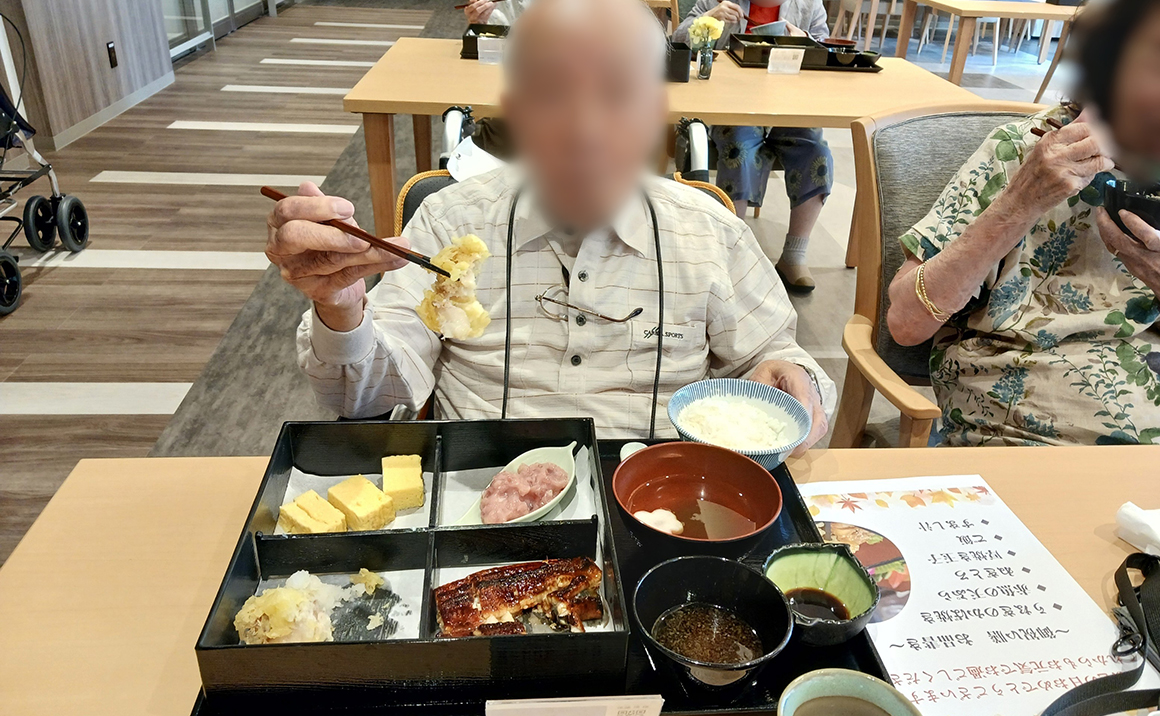 朝食・昼食は複数のメニューからの選択制となっており、選んでから調理するため温かく美味しいお食事が楽しめます。さらに月に1回程度、季節感のある特別メニューもご用意いたします。お米は「金芽米(きんめまい)」を使用し、旨みや栄養素が詰まった層を残したご飯をご提供いたします。