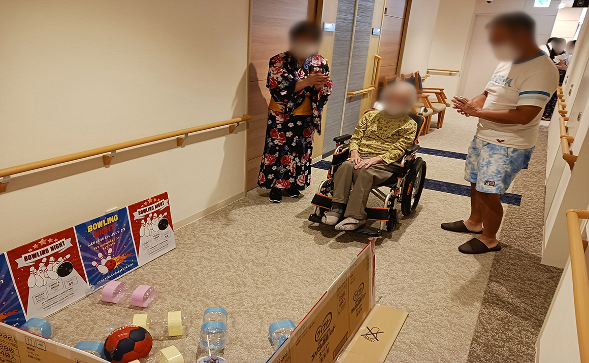 また、機能訓練指導員による個別リハビリを週に2回実施しています。ご入居者様の身体機能向上や介護予防を目指し、日常生活動作を行えるように専門的なリハビリや支援を行っています。
