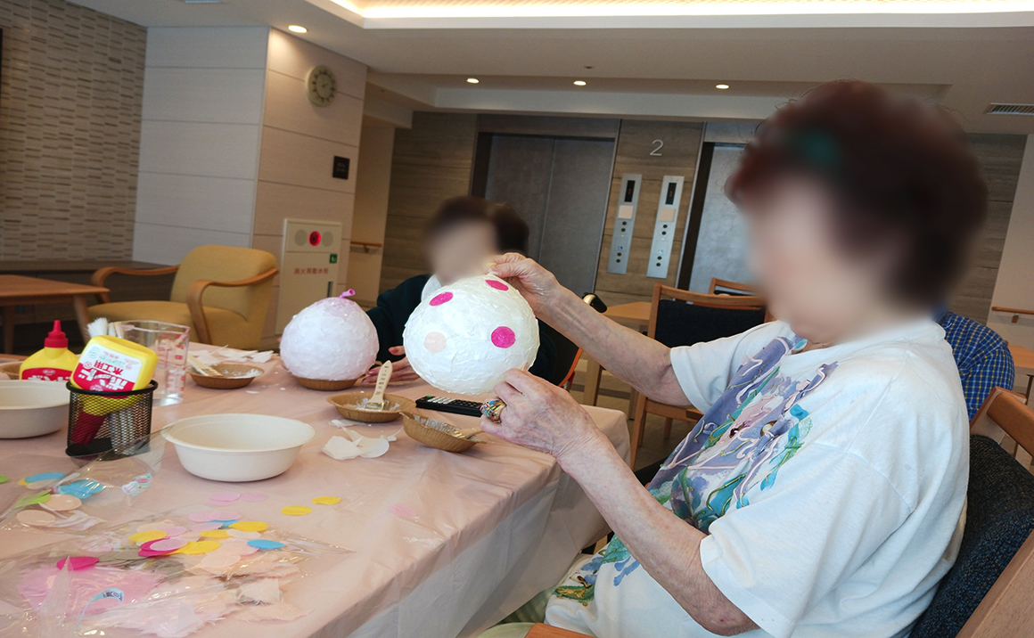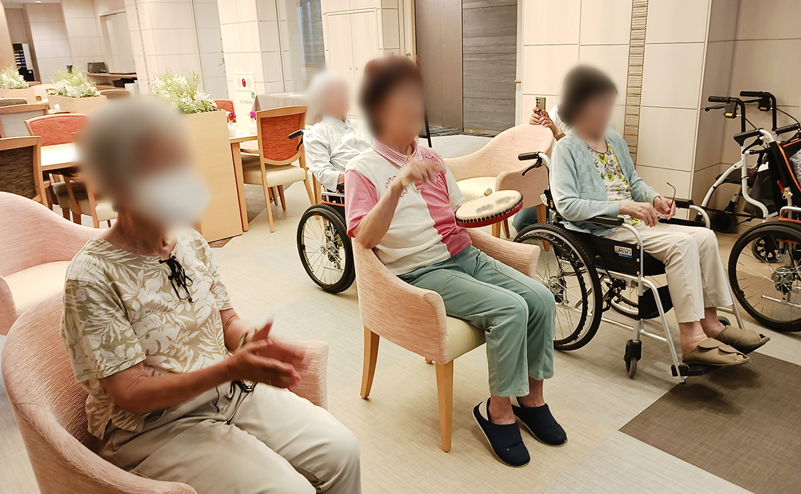 また、機能訓練指導員による個別リハビリを週に2回実施しています。ご入居者様の身体機能向上や介護予防を目指し、日常生活動作を行えるように専門的なリハビリや支援を行っています。