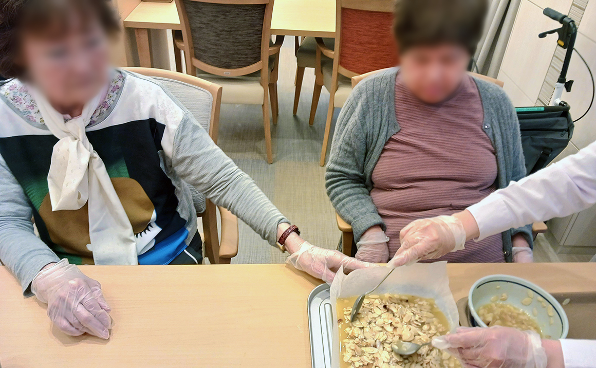朝食は和食・洋食の2種類から、昼食は肉・魚・麺類・丼ものの4種類からメニューをお選びいただけます。ご注文いただいてから調理いたしますので、毎日出来立ての料理をご提供いたします。見た目も味にもこだわり、四季折々の食材を活かした食事をお楽しみいただけます。ミキサー食・きざみ食などお一人おひとりの状況に応じたご調整も可能です。