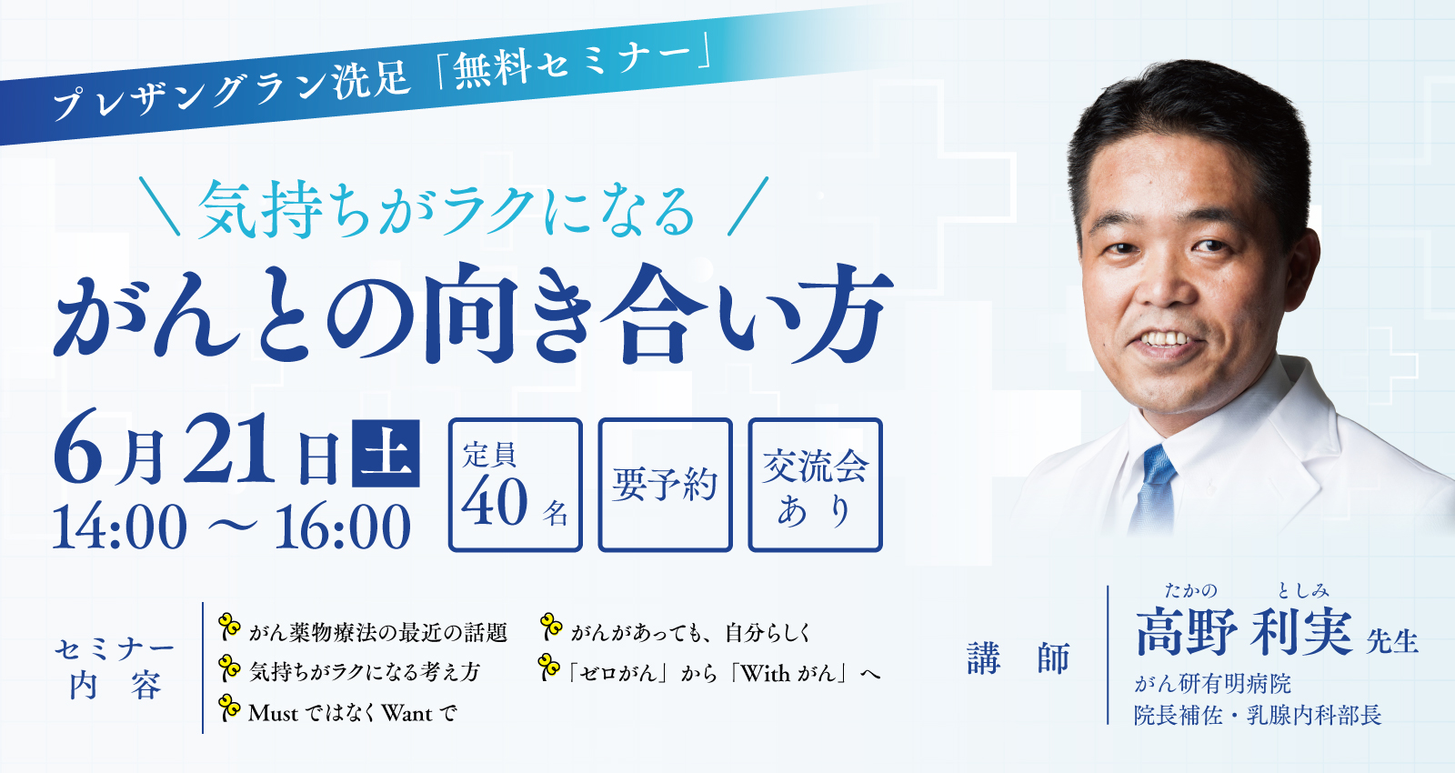 [セミナー終了] プレザングラン洗足 『気持ちがラクになる がんとの向き合い方』セミナーを開催しました