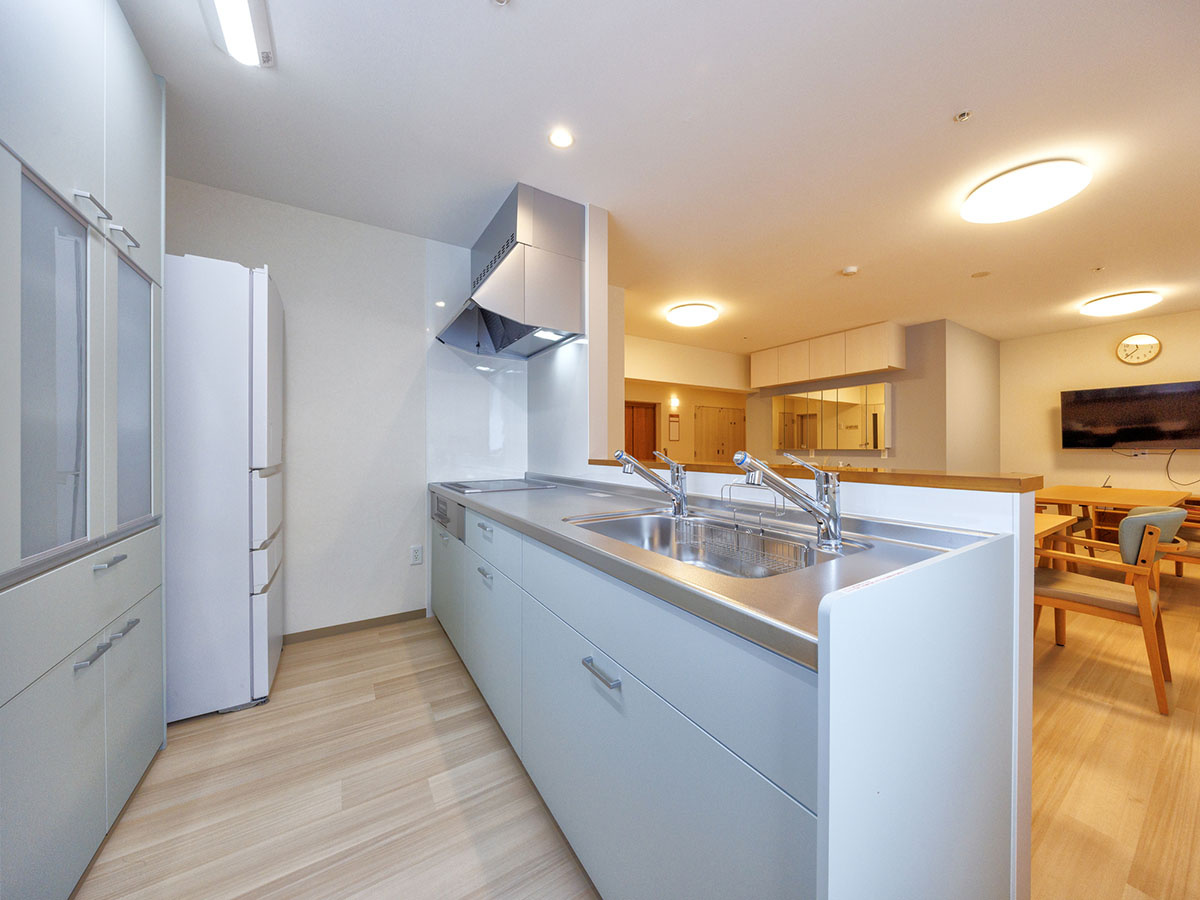 「できることはご自身で」を基本に、調理や盛付けもご入居者様が中心。スタッフがサポートしながら、包丁やIH調理器をお使いいただけます。