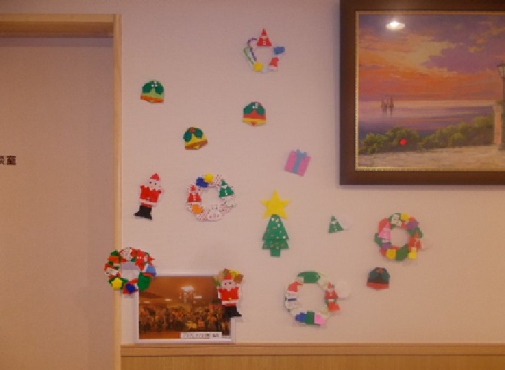 クリスマスまであと1か月!プレザンメゾン西広島ではクリスマスの飾りつけが始まりました!折り紙で作ったリースは昨年利用者の皆さんと一緒に作ったものです。今年は何を作ろうかな?と試行錯誤しています。