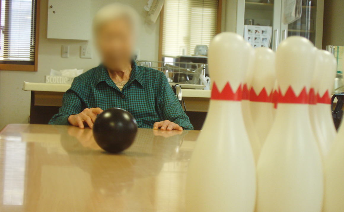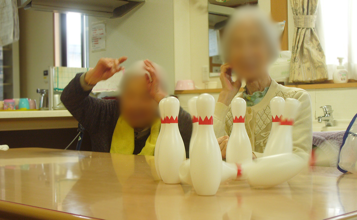 今月は賞品のお菓子をかけてでボーリング大会を行いました。 皆様今回もいつものように真剣にピンを見つめ、慎重にボールを転がして下さいました。 なかなか思う所にボールが行かずピンが倒れませんが、倒れた時は歓声があがります。 終了後は成績発表、高成績の入居者様から賞品を選んで頂きましたが、選ぶ時も真剣でした。 皆様をワイワイお話しながら賞品のおやつを楽しんで頂きました。