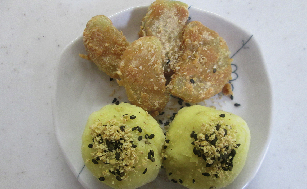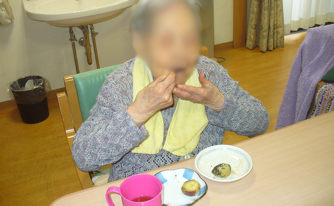 今回は、秋の味覚、サツマイモでおやつを作って頂きました。 蒸したサツマイモを潰して、皆様に丸めて頂き、ごまをふりかけたり、 とても手際よくベテランの方々は流石です。 サツマイモの味がしっかり出ており皆様とても嬉しそうに召し上がられました。
