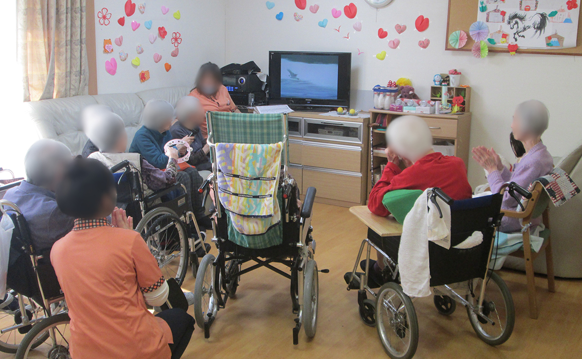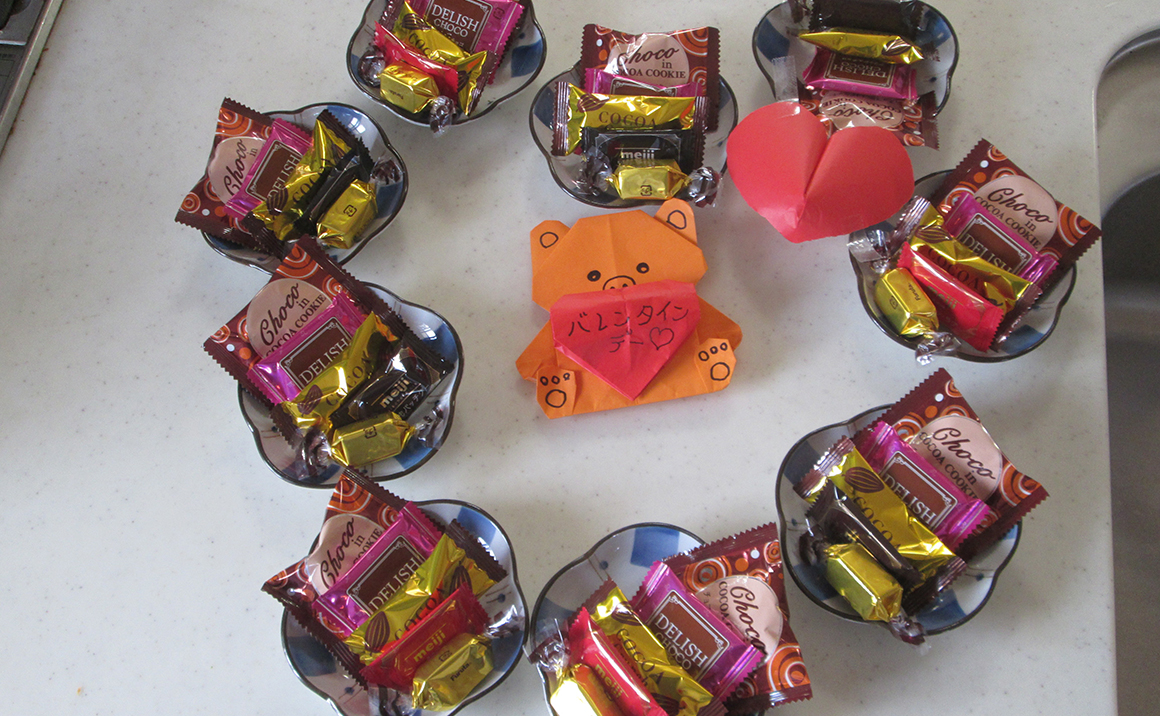 今月のカラオケは14日のバレンタインに行いました。 バレンタインソングをリクエストしようとしましたが、なかなか皆様に馴染みがなく、 いつもと同じような曲が多かったですが、今回は参加者が多く、タンバリンの音もたくさん聞こえ、 賑やかに楽しんで頂けました。 カラオケ終了後のおやつはバレンタインですので、皆様にチョコレートを食べて頂きました。