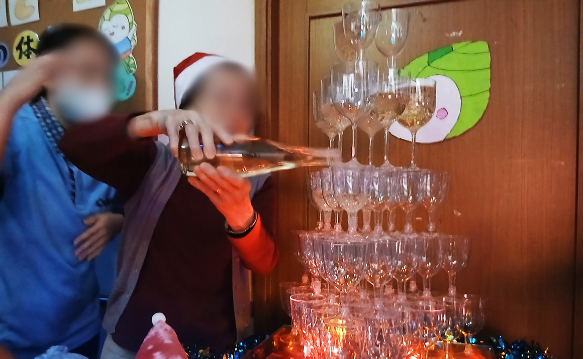 クリスマスケーキ作りから始まって🎂 栄生名物シャンパンタワー🍷