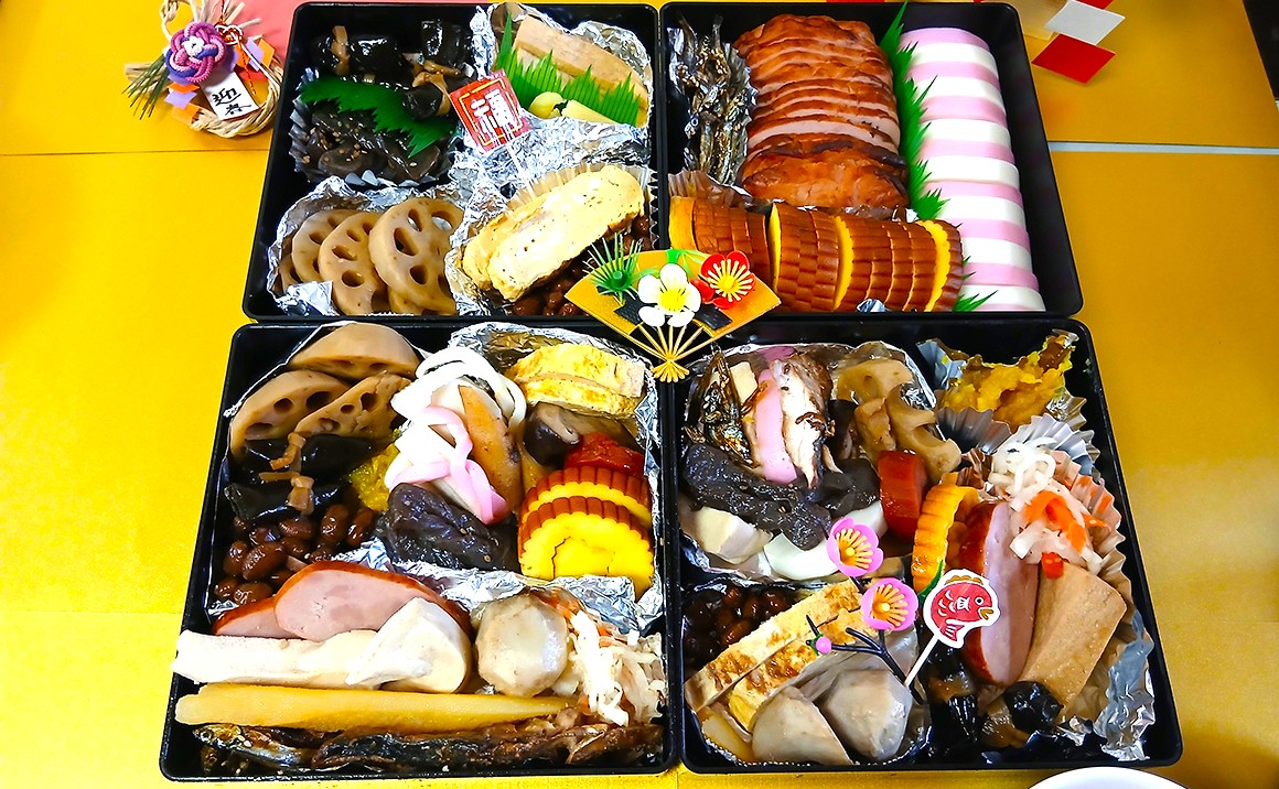 皆さんで協力しておせち料理を作っていただきました。