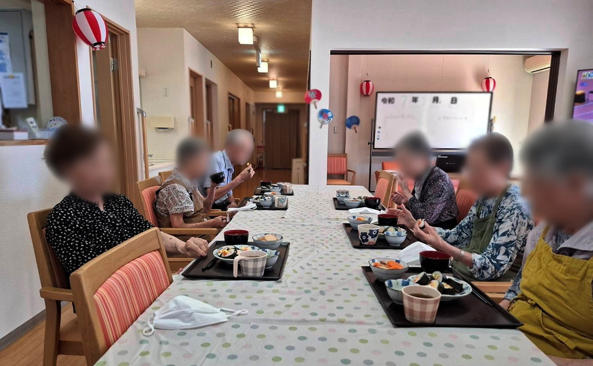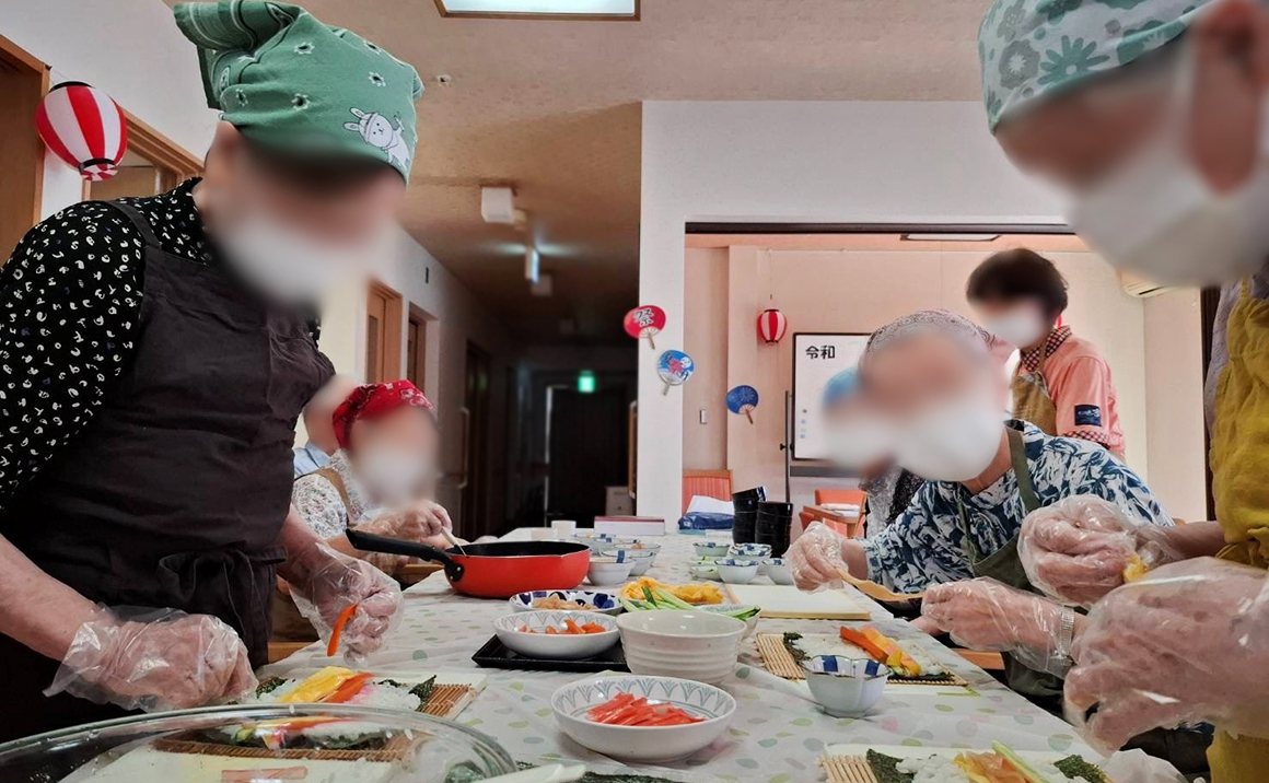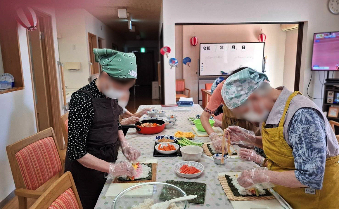 こんにちは 厳しかった暑さもやっと峠を越し秋の気配を少し感じることができるようになりましたね。 たのしい家瑞穂では敬老の日にちなみデイと合同で巻き寿司作りを開催しました。 皆様、久しぶりの手料理で初めは手間取っていましたが段々と笑顔が見られ楽しくお話しされながら完食されました。