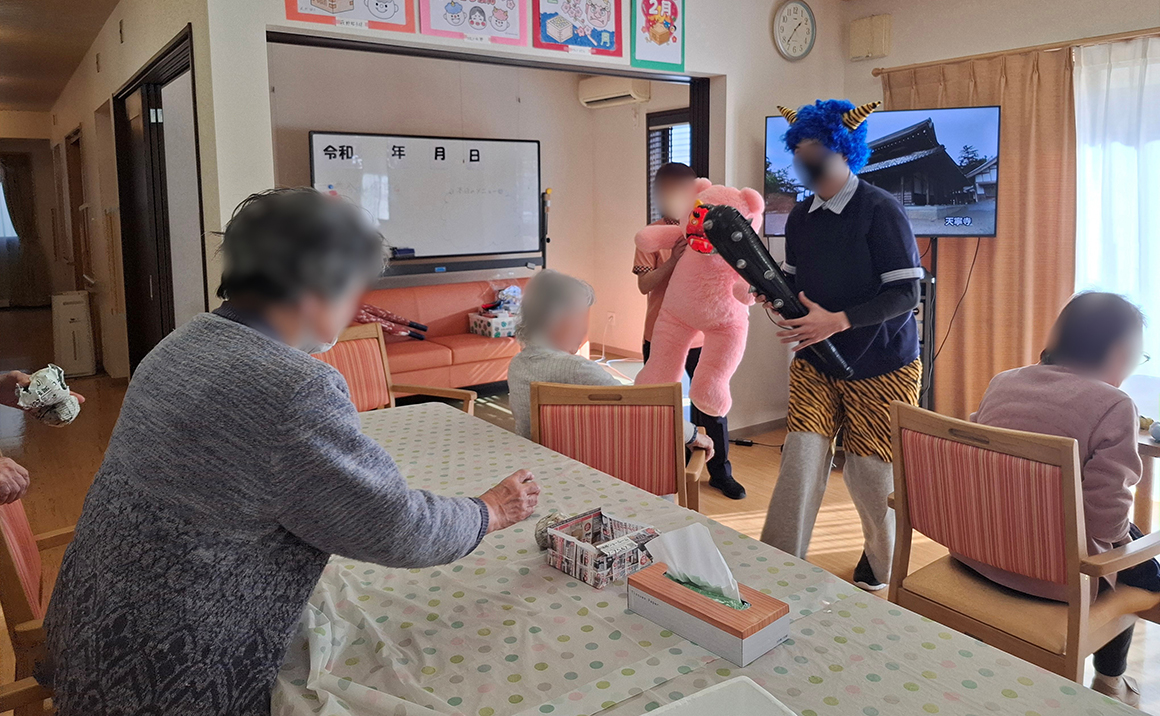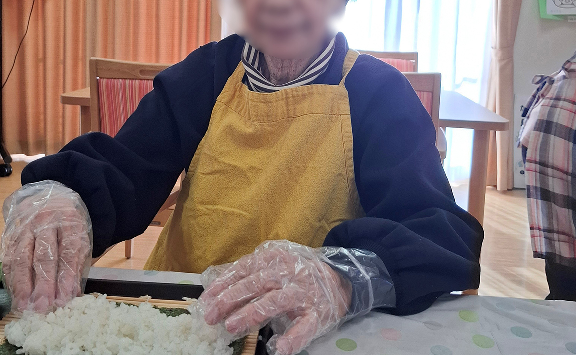 たのしい家瑞穂では節分祭を行いました、皆様ご自分で恵方巻きを作られ『久しぶりに作るけど上手く巻けるかしら』とお話しながら楽しそうに