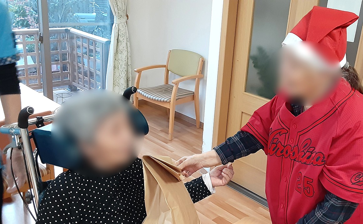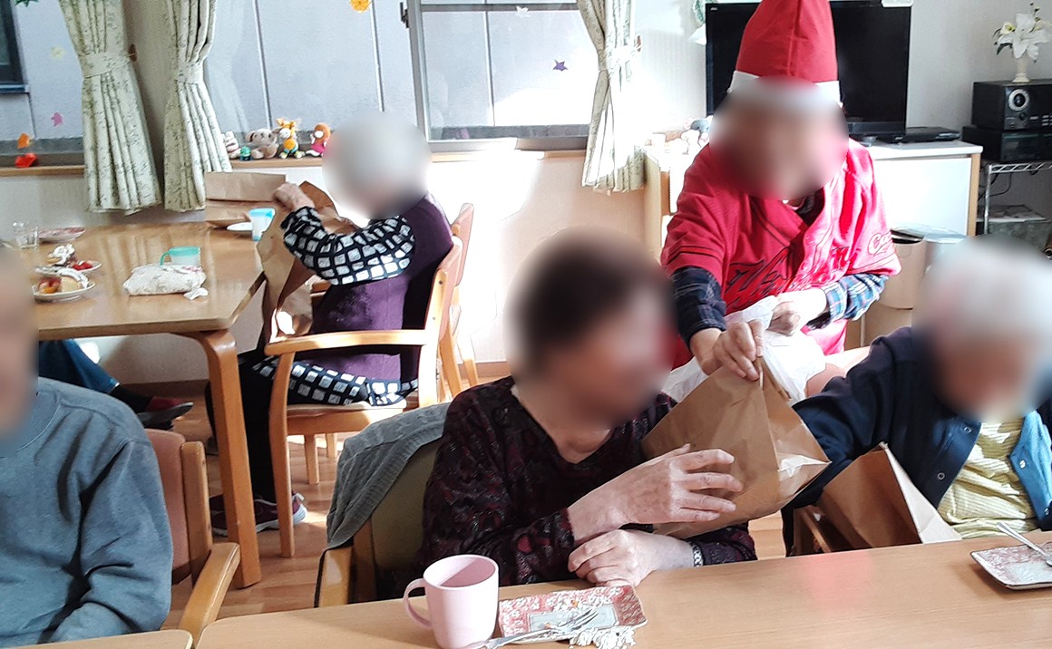 こんにちは 急に真冬がやってきた感じです。 皆様体調はどうですか? たのしい家金山では少し早めのクリスマス会を開きました。 入居者様にご協力頂き立派な美味しそうなケーキもでき上がり、又、サンタさんより贈り物も届き 楽しい、素敵な笑顔いっぱいのクリスマス会になりました。