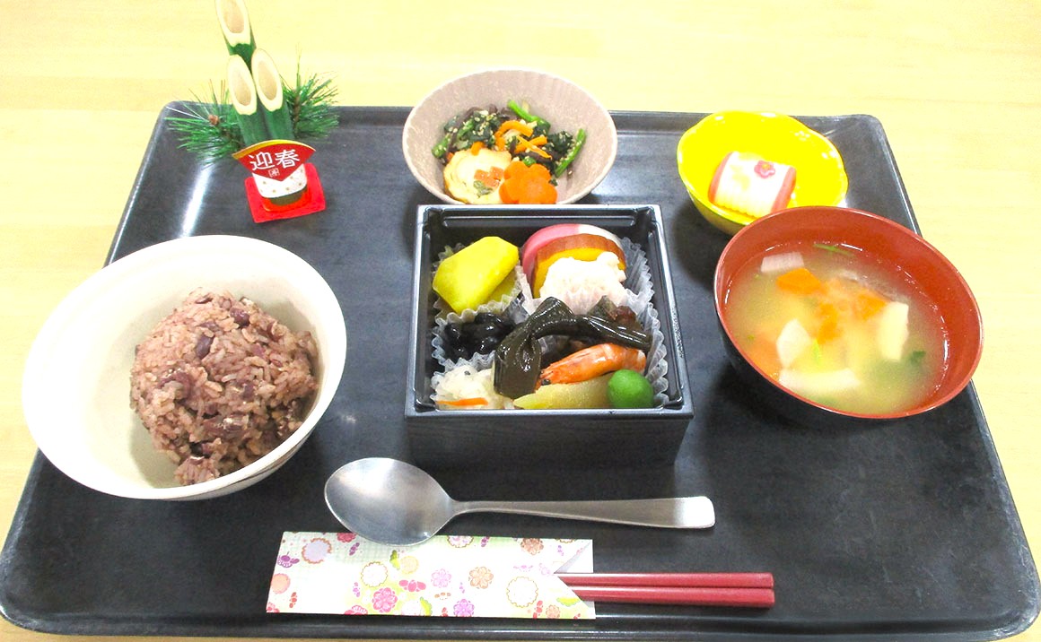 明けましておめでとうございます。 職員が年末に皆様とご一緒に作成した絵馬を玄関先に飾りました。 また手作りしたお賽銭を入れておみくじも引いて頂いてます。 元旦から毎日引かれる方もいらっしゃり「これするの楽しみやねん」とお話しされています。 元旦の朝はお雑煮を召し上がって頂き、お昼はお赤飯・おせち・お雑煮を召し上がられました。 今年もプレザンメゾン明石魚住をよろしくお願い致します。