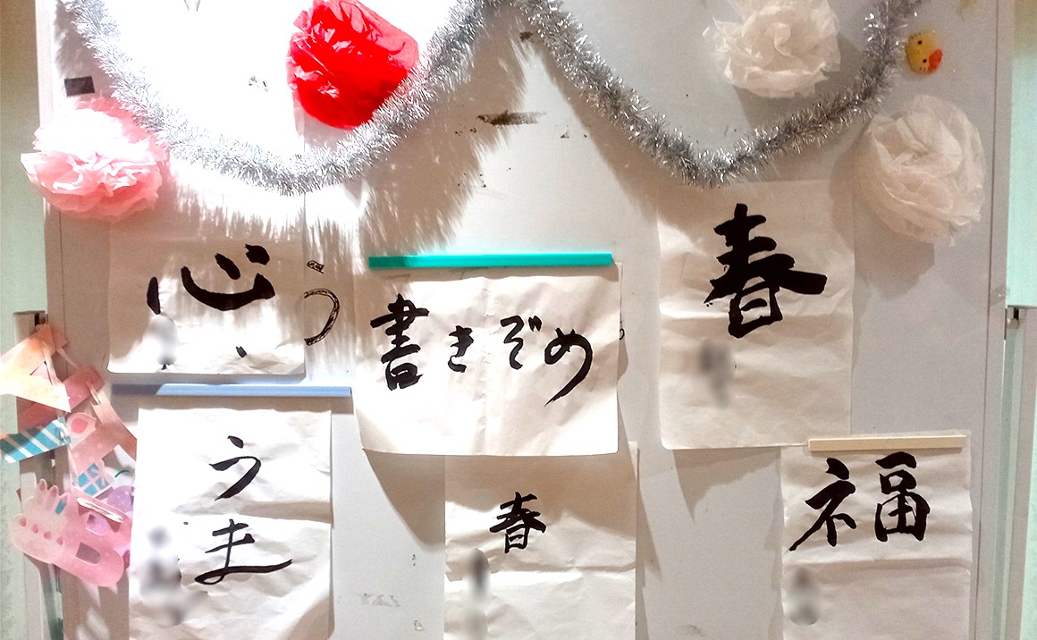 各フロアで書き初めをしました。皆さん達筆!さすがです!