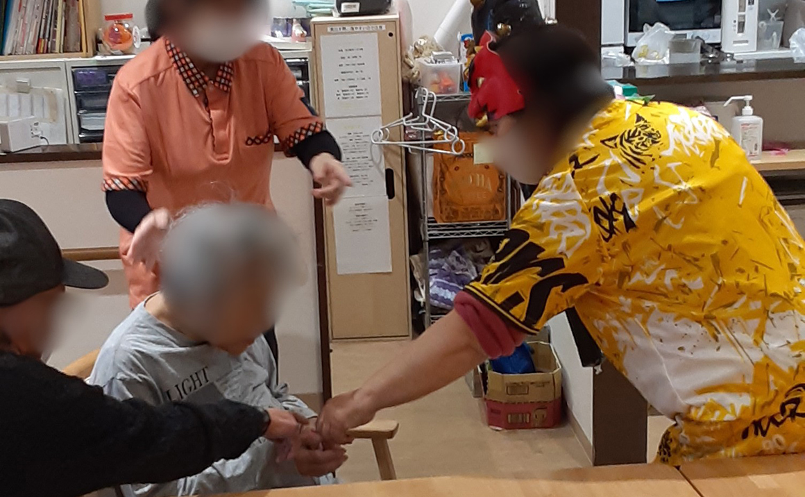 こんにちは!たのしい家新深江のブログ担当です^^ 今月は節分だったので、みんなで鬼退治をしました!スタッフ扮する黄鬼…結構リアルですね(笑)