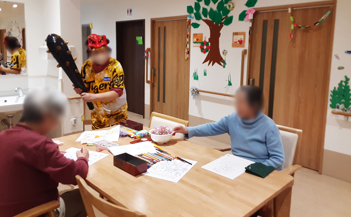 利用者様と一緒に豆まきを楽しみました!