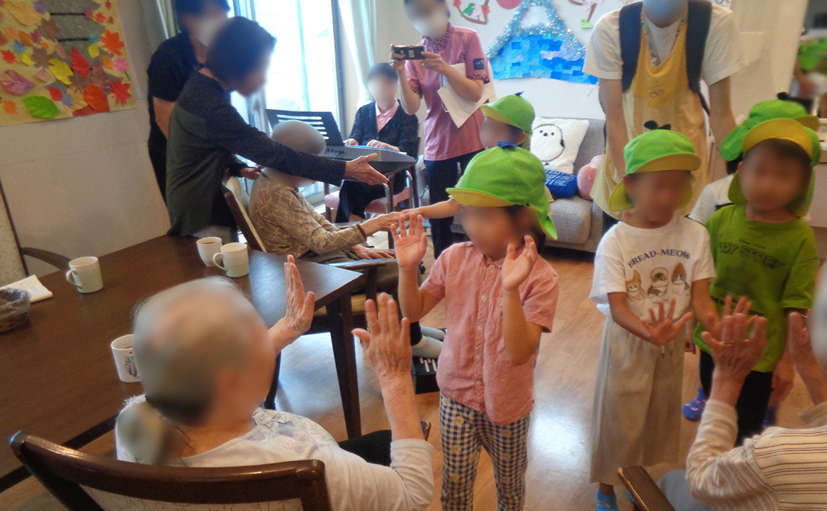 今年も、ご近所さんの保育園の園児ちゃんから、歌のプレゼントをいただきました。 キーボード演奏は目黒東が丘より、入居者様が行い、素敵な合唱会となりました。 終わりには、ハイタッチを交わし名残惜しいお別れです。 ありがとうございました。元気パワーを貰いました。