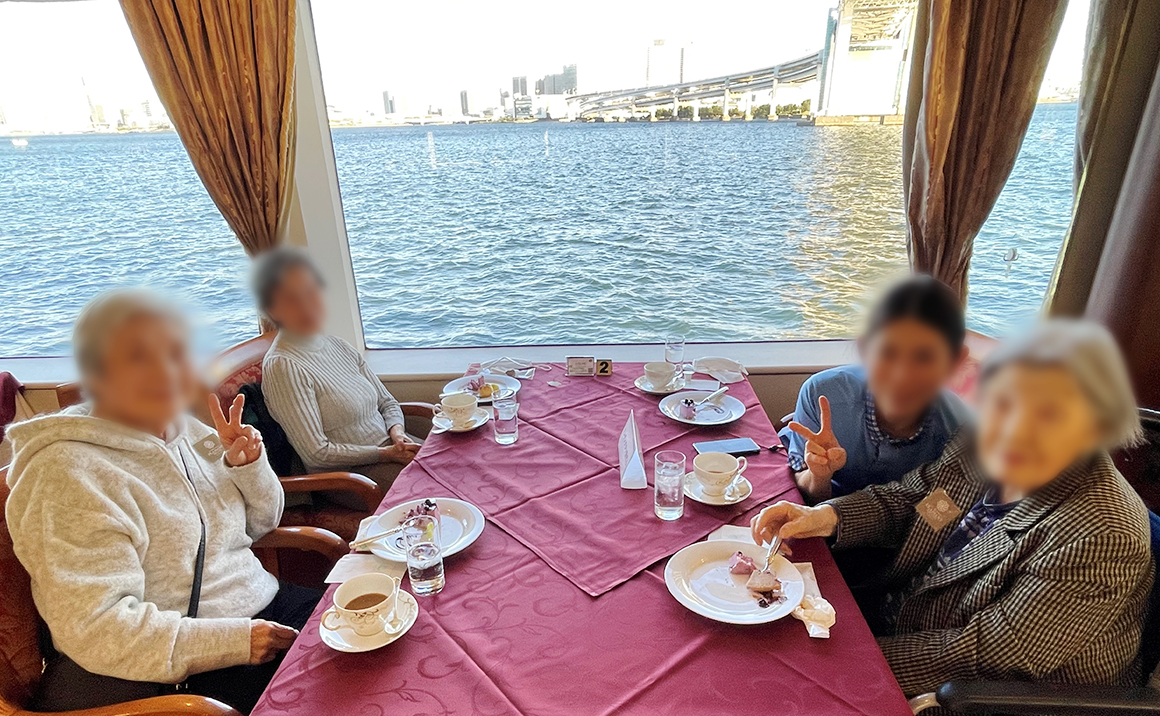 船の上で景色を見ながらアフタヌーンティーを楽しまれました♪