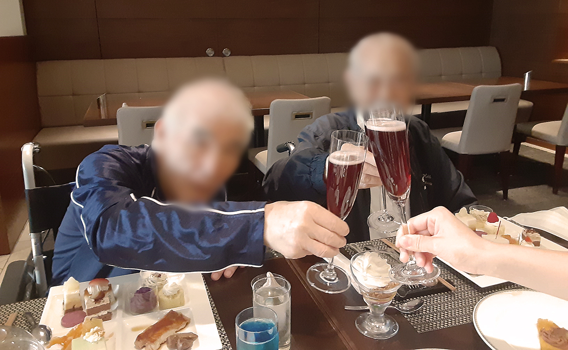 インターコンチネンタル東京ベイのスイーツビュッフェに行ってきました! お好きなスイーツを好きなだけご本人に取ってもらい、お茶を楽しんでいただきました♪ たくさんのスイーツを目の前にして皆さん自然と笑顔に…!