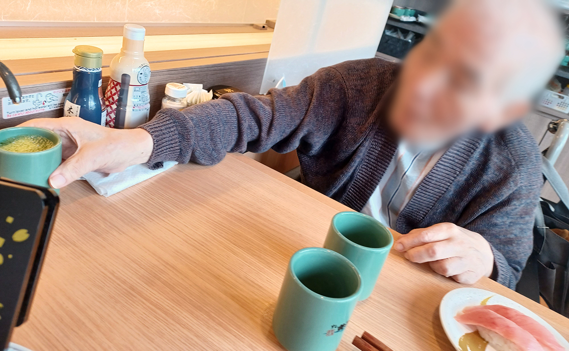 銚子丸の大ファンで毎月外出ツアーでご一緒する方は 全員の分のお茶を入れてくださったり、皆さんと和気あいあいと会話を楽しまれながら召し上がっています。 お寿司がお好きな方がたくさんいらっしゃるのでご希望があればまたお連れしたいと思っています。