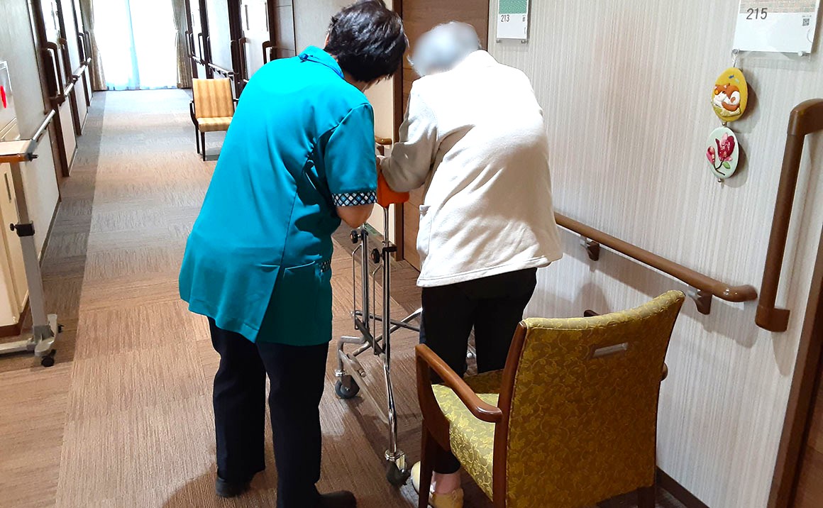 まずはご入居者様の身長や体重、可能な歩行距離やスピードなどの身体能力テストを実施させていただきました。