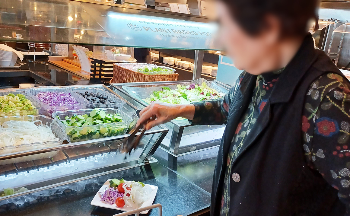 多くのお料理が並ぶ中で好きなものをご自身で選び、気に入ったお料理をおかわりしたり、食べたことがないお料理を選んだり、