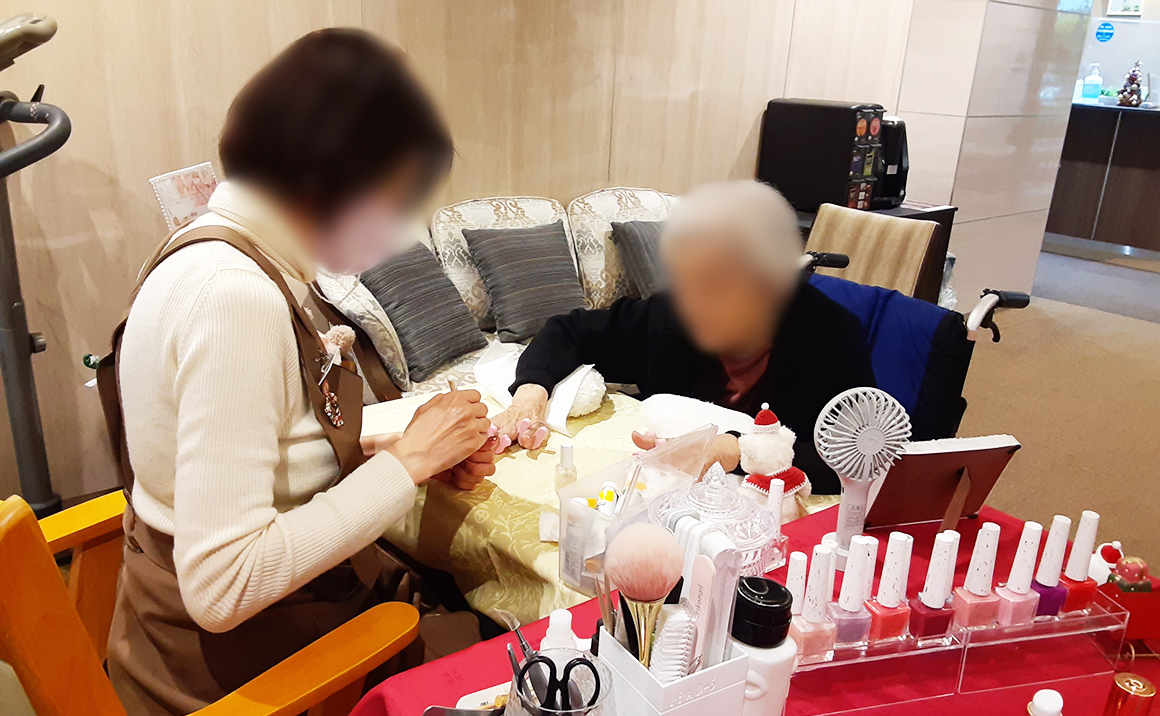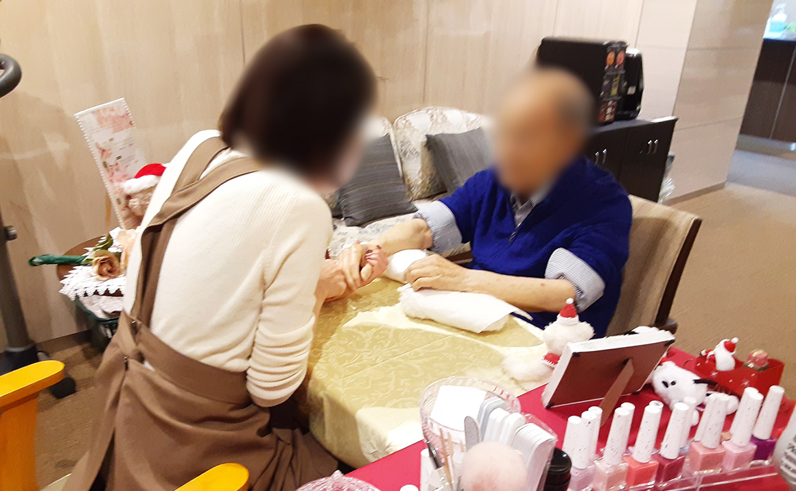 爪に色を塗るカラーリングだけでなくハンドマッサージやトリートメント、甘皮ケアなどもしてくれるので男性も参加OKです〇