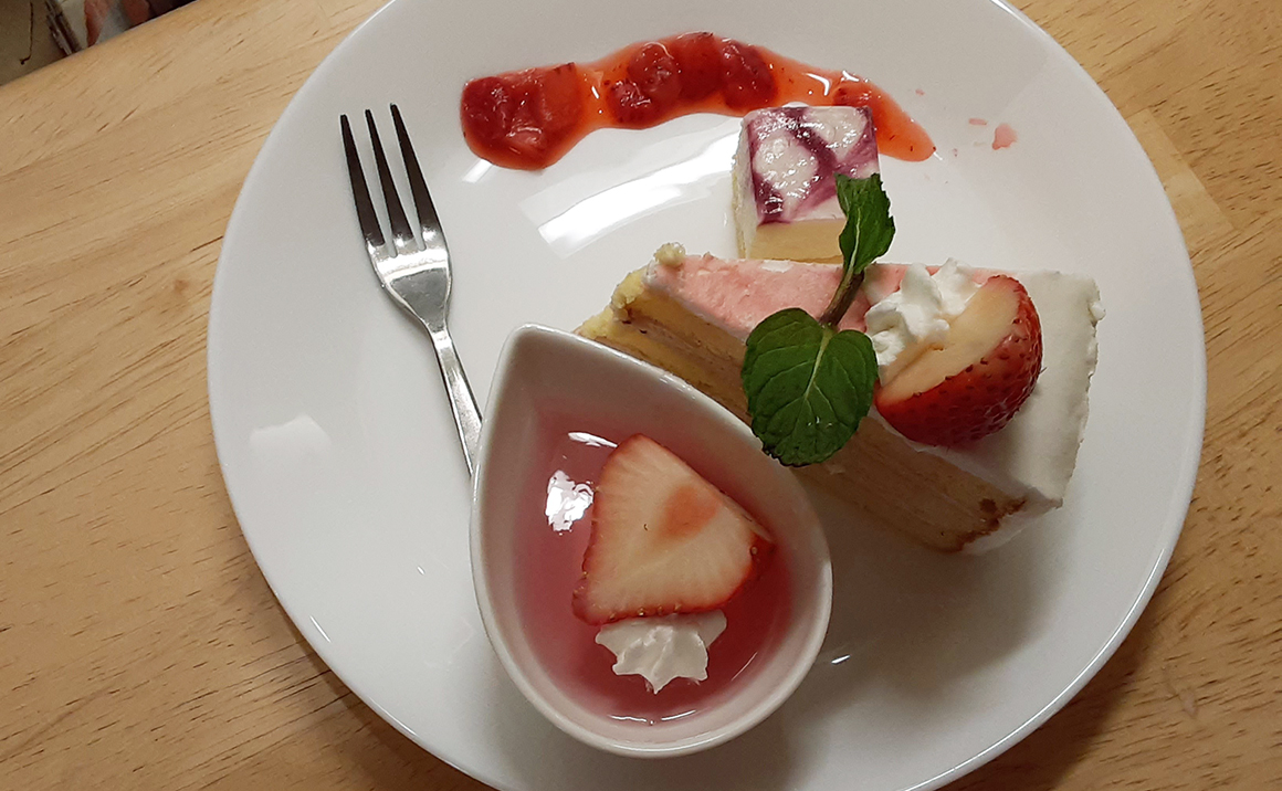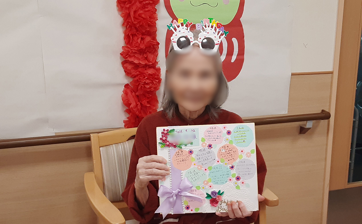 5月のお誕生日会♪♪ 5月のお誕生日の方は男性2名、女性2名でした。 今年5月から担当スタッフが誕生日カードを作り、他スタッフもメッセージを書くようになりました。 誕生日カード作成が得意不得意なスタッフもおられますが個性豊かで利用者やスタッフも喜ばれておりました。 誕生日プレートはイチゴがメインで酸っぱいイチゴにあたった方もおられましたが、皆様喜んでおられました。