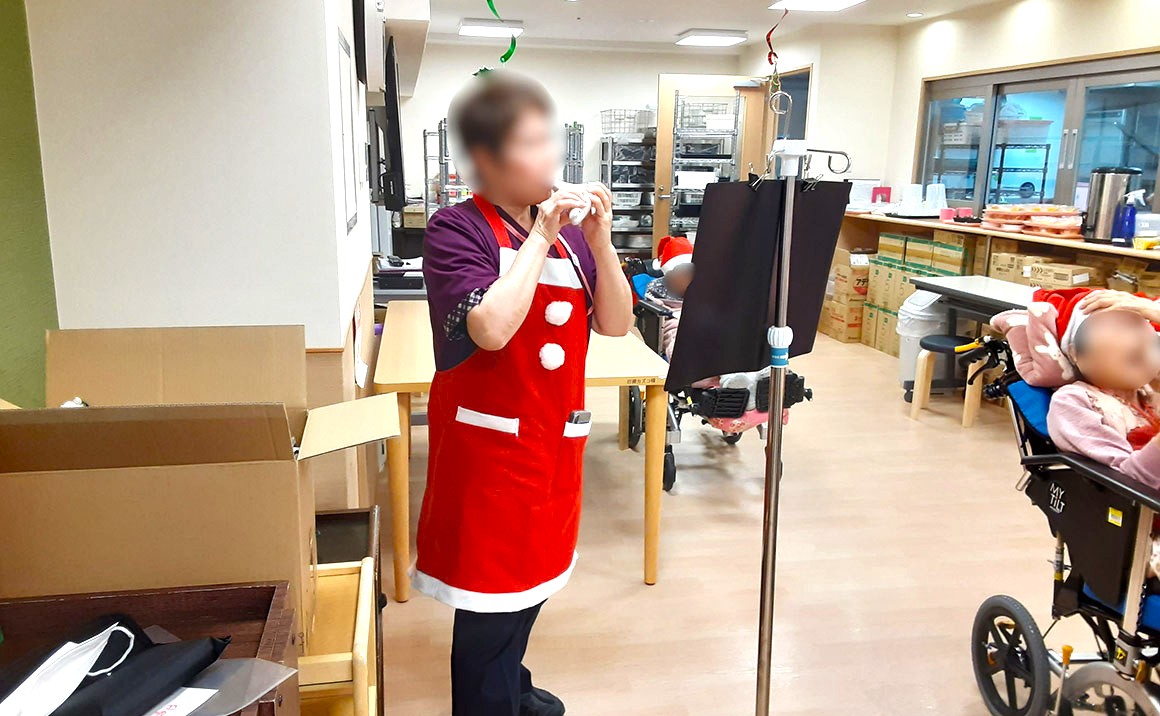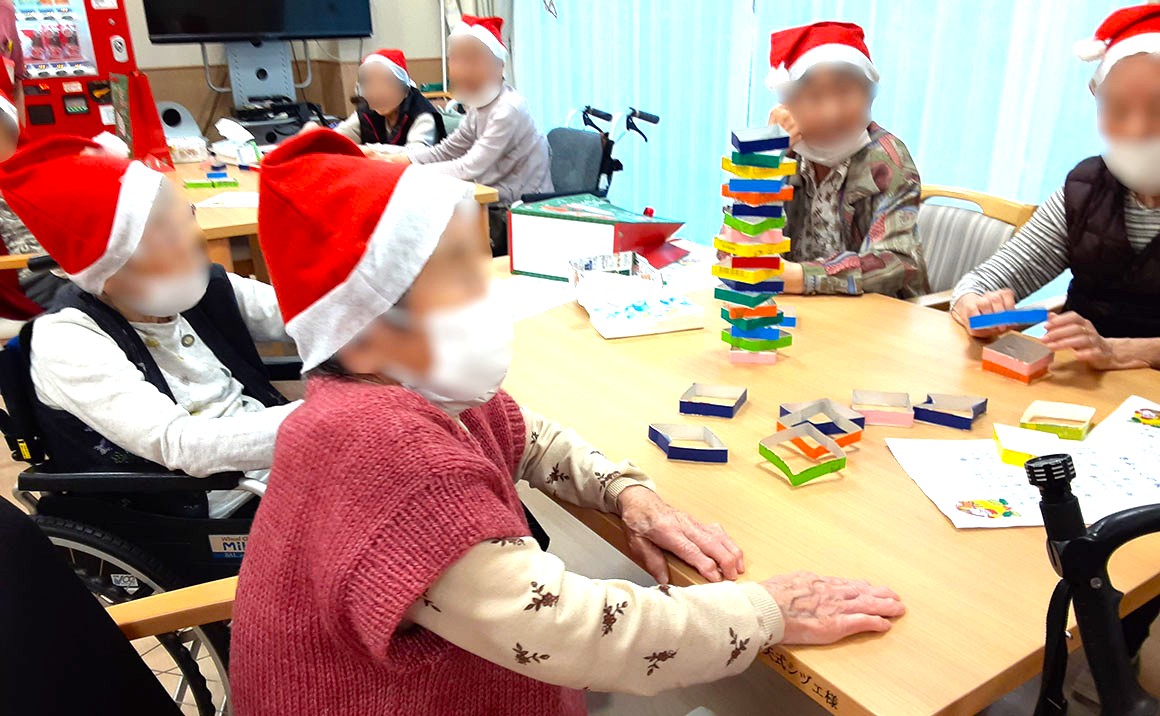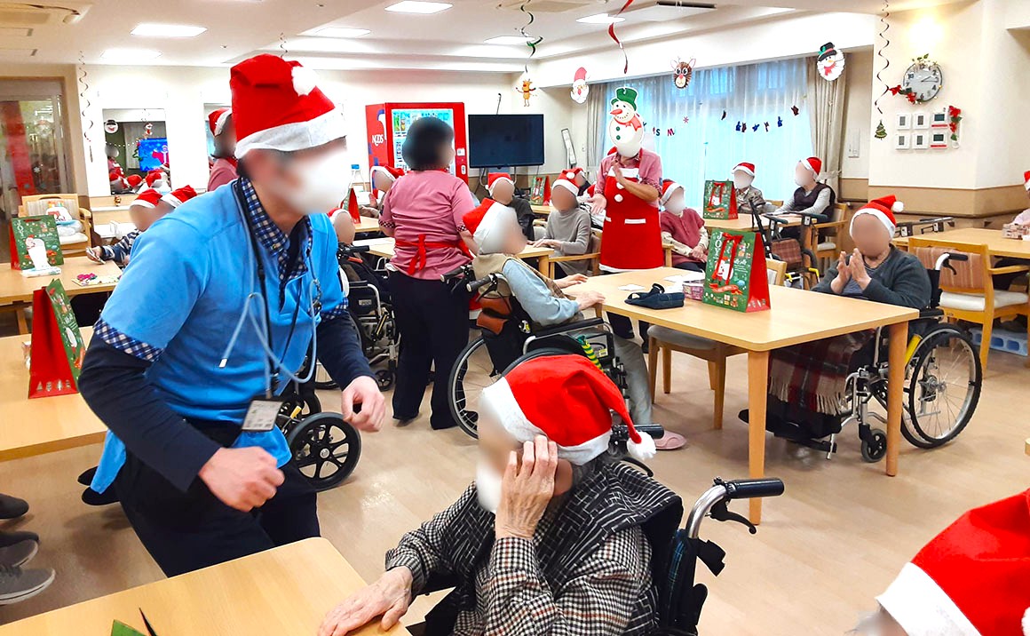 12月24日にクリスマス会を開催しました。 ゲームや、クリスマスソングを合唱したり、看護師さんがオカリナを演奏してくださり、楽しい時間を過ごして頂きました。 プレゼントは名前入りの靴下。サンタクロースからのプレゼントなので朝方、 枕元にプレゼントを置かせていただきました。 朝とても皆様喜んで下さり、この歳でサンタが来てくれたと仰る方もいらしゃいました。 何歳になってもプレゼントは嬉しいものですね。