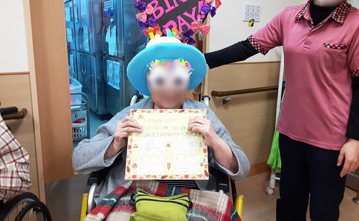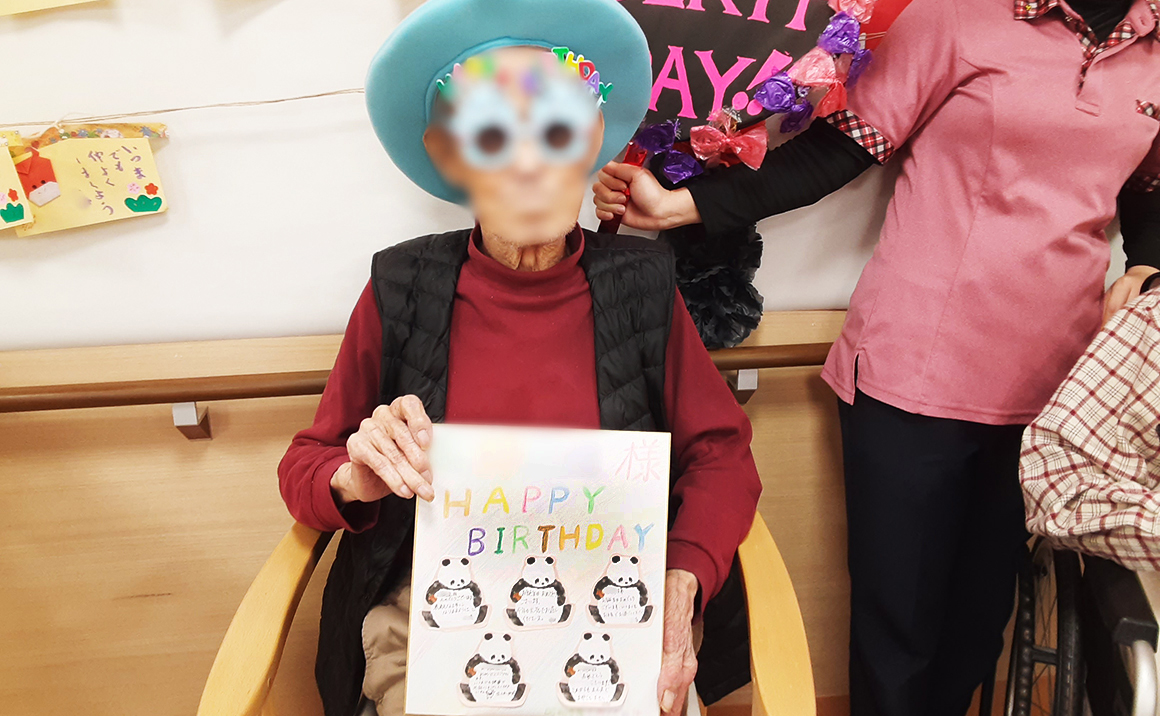 1月23日に1月のお誕生日会を開催しました。 お誕生日おめでとうございます。 素敵な1年になりますように♪♪ 今回も誕生日前に皆様とご一緒に体操を行いました。皆様楽しんで体操をされていました。 スタッフから、メッセージが沢山記載された色紙をプレゼントで喜んでおられました。 ケーキも美味しいと食され大満足のご様子でした。 これからも、ずっーと皆様の誕生日をお祝いしてまいります♪