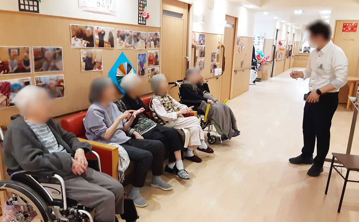 この時のレクは脳トレとして好きな魚を参加者の方に聞き、ホワイトボードに漢字で書いていただくと少し難しい事をしました。 皆様で助け合い正解もありましたが、「たこ」が出たときは中々答えが出ず、スタッフがヒントを出しましたが それでも解らないとのことで、 金八先生(施設長)が登場♪♪ スラスラ書かれると周りが(オー)と叫ばれていました。 魚編はいっぱいあるので凄く楽しまれていました。