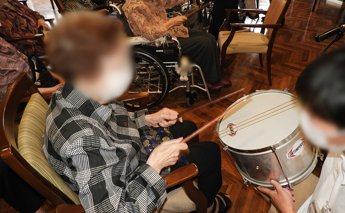 クイズやサンバの体験企画、理科の実験のようなアートなど入居者様もいつもと違うレクと元気で若い学生さんに大喜びでした。