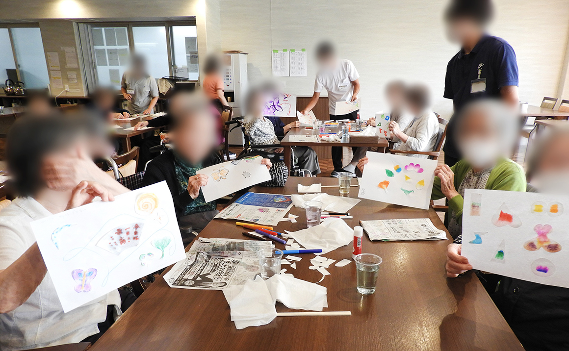 入居者様とのコミニュケーション、体操、レクリェーションに参加して頂いています。