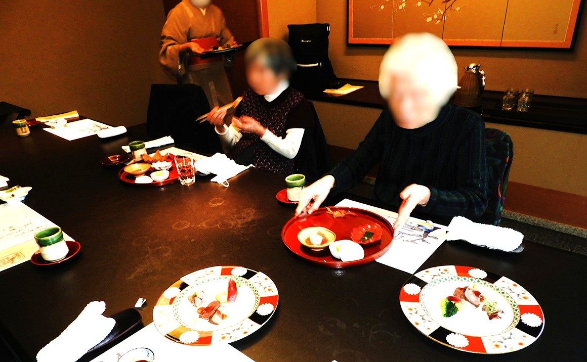 春に引き続き秋の紅葉シーズンを狙い、八王子の鶯啼庵(おうていあん)で紅葉を楽しみながら、おいしい京懐石料理を楽しみました。 鶯啼庵は八王子インター近くの山のふもとに、およそ3000坪の敷地に様々な木々が植えられ、池には錦鯉が泳ぎ、山の上から川が流れ滝も配置されていて美しい庭園に、 赤や黄色に染まった木々を楽しみました。 桜の時期にまた企画し、年2回の恒例行事としていくことになりました。
