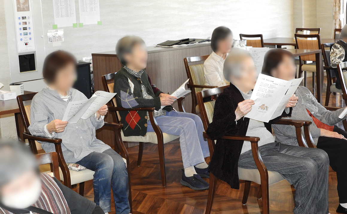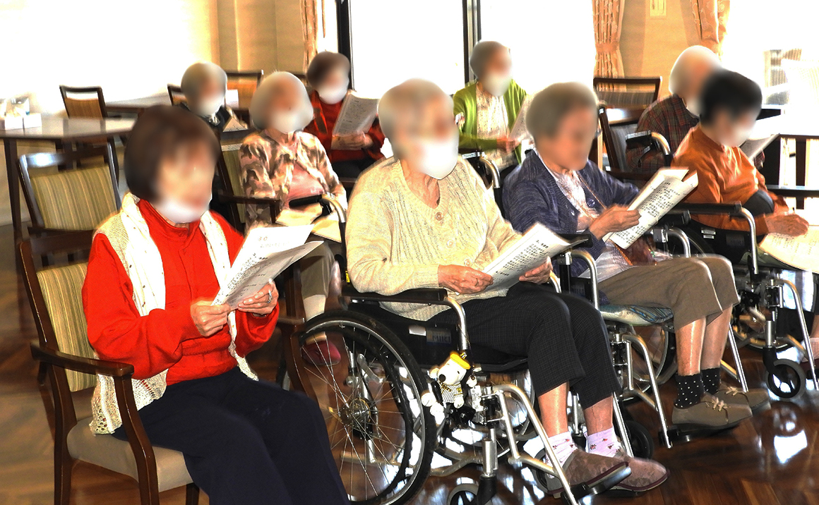 大学時代にピアノを専攻されていたご入居様のご家族にお願いしてはじまった「ピアノとともにうたいましょう。」は、 月3回開催している「カラオケ」とはちょっと趣が違い、「昭和歌謡」より少し格調高くを目標にピアノの生演奏で楽しんでいます。 2年6か月が経過し、12月に30回目を迎えることができました。