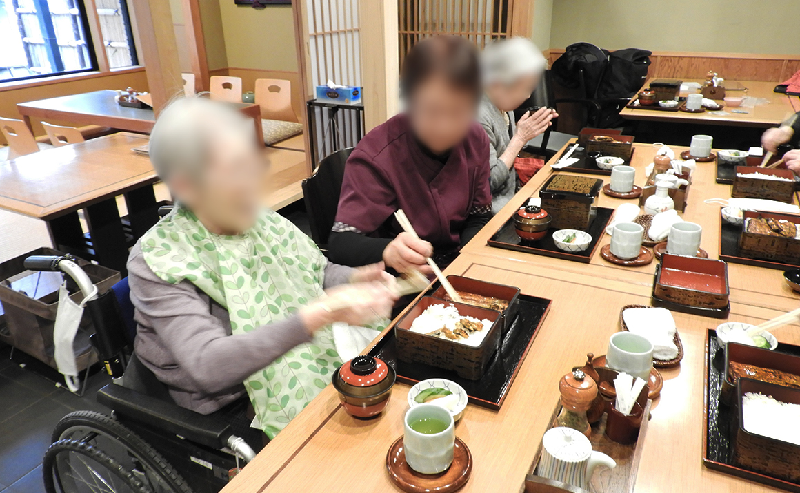第4回「初詣とうなぎのお食事イベント」を開催しました。初詣は武蔵一の宮の「大國魂神社」で、「くらやみ祭り」で有名です。お食事は創業150年の老舗鰻店です。 初詣参加者はお賽銭を入れてお祈りをしたあと、お守りをいただきました。 今年度は4回にわたり、入居者様合計19名、職員延べ9名の参加となりました。初詣不要の方はお食事のみをコースを設定しました。