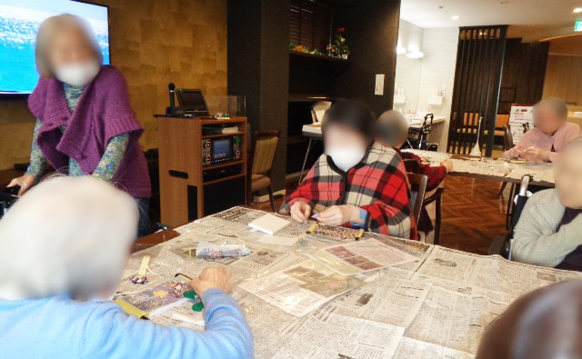昨年8月より、他施設でも行っている「シニア工作」をはじめました。現在17名のご入居者様が参加をしています。