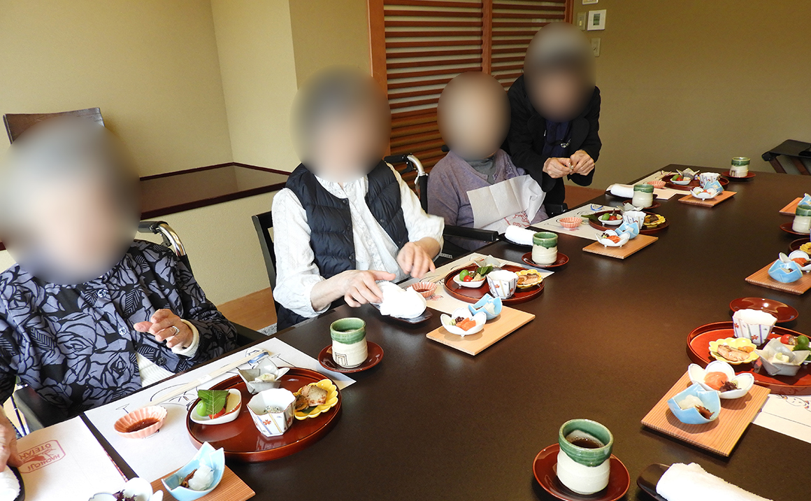 鶯啼庵は八王子の山の中腹にある京懐石の名店です。お庭が素晴らしく、入居者様に非常に人気のあるお店です。年2回(春のさくら・秋の紅葉)今回は3回目のイベントとなります。